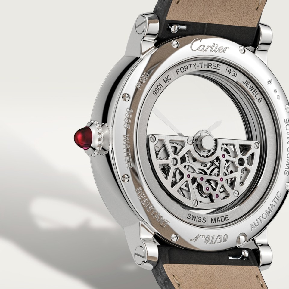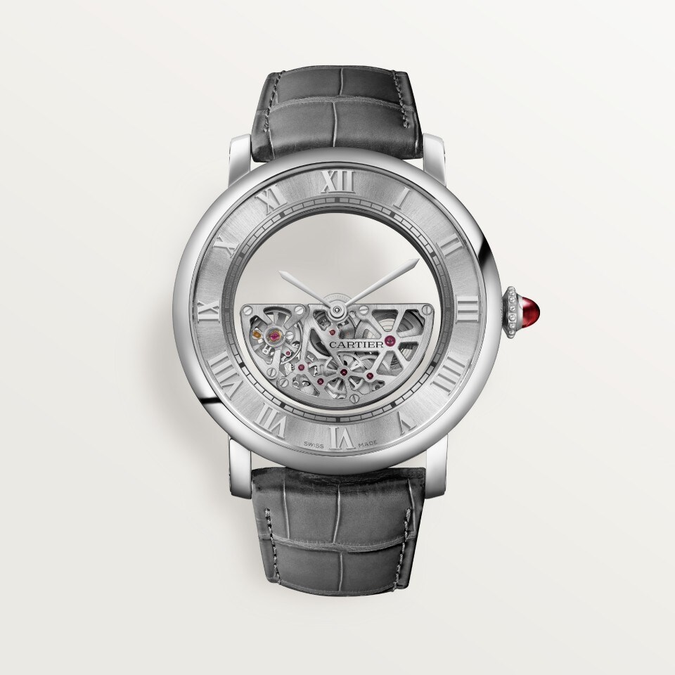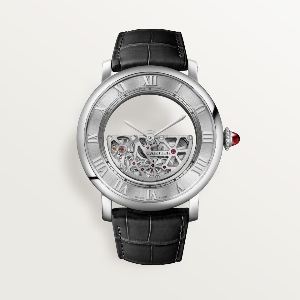 Rotonde de Cartier watch, Masse Mystérieuse skeleton, mechanical movement with automatic winding, caliber 9801 MC.