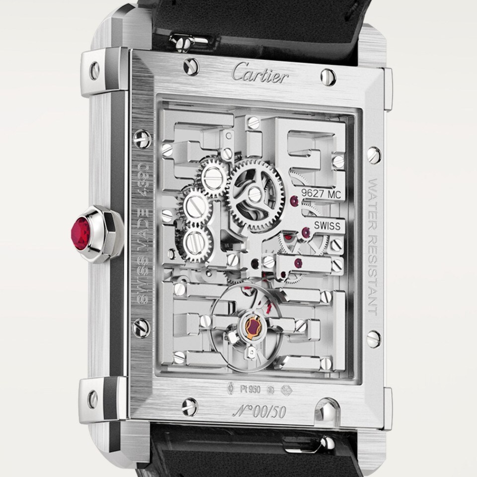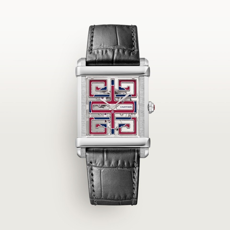 Tank Chinoise watch, skeleton, Manufacture mechanical movement with manual winding, caliber 9627 MC.