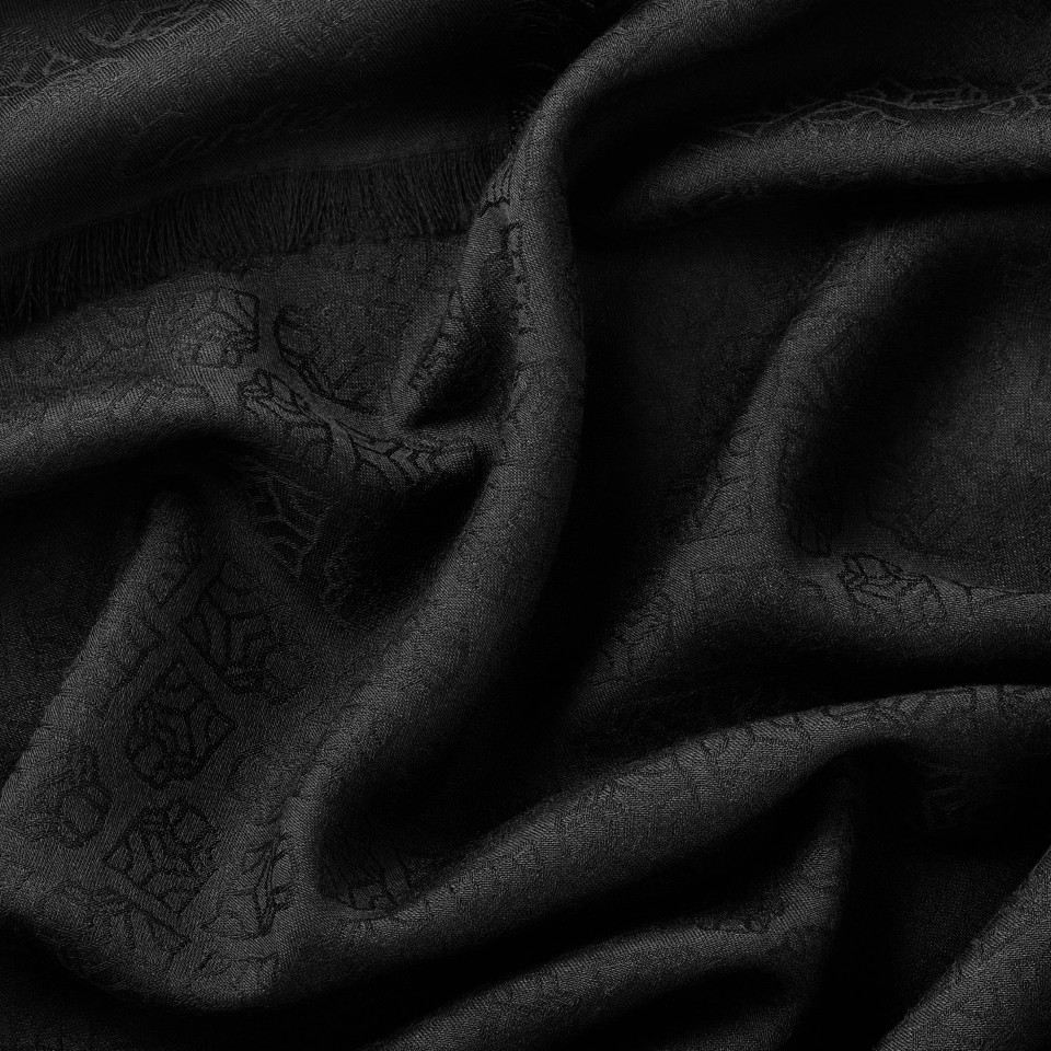 Panthère Graphique motif cashmere, wool and silk shawl in black. Dimensions: 140 x 140 cm.