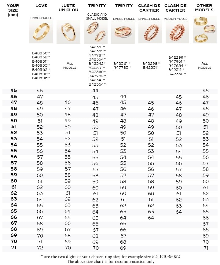 The sizing of our Cartier creations varies depending on the collection. You can find all the ring sizes in our recommendation chart.