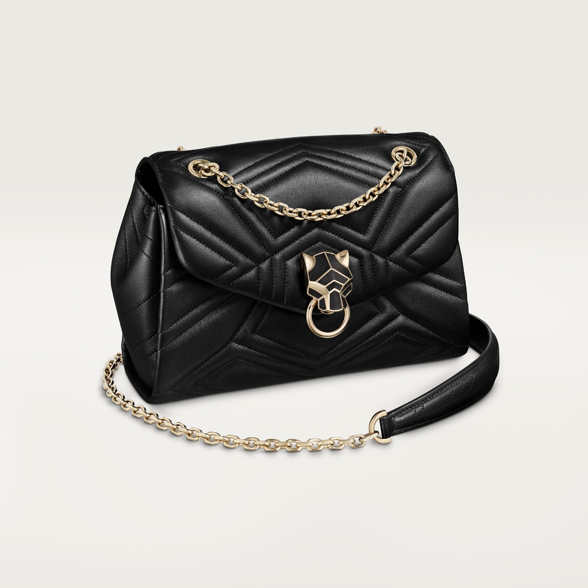 A daring motif enriches the allure of the Panthère Graphique bag, with geometric shapes inspired by its signature lock.