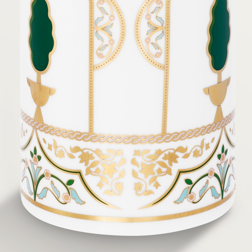 Panthère de Cartier vase, medium model, in Limoges porcelain with arabesques motif. Dimensions: D 9 cm x H 22 cm