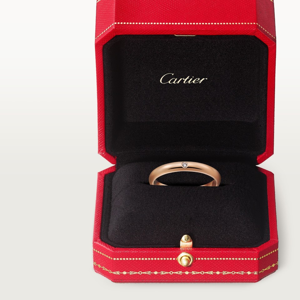 1895 wedding band, width 2.6 mm, rose gold (750/1000), set with a brilliant-cut diamond of 0.01 carat (for size 52).