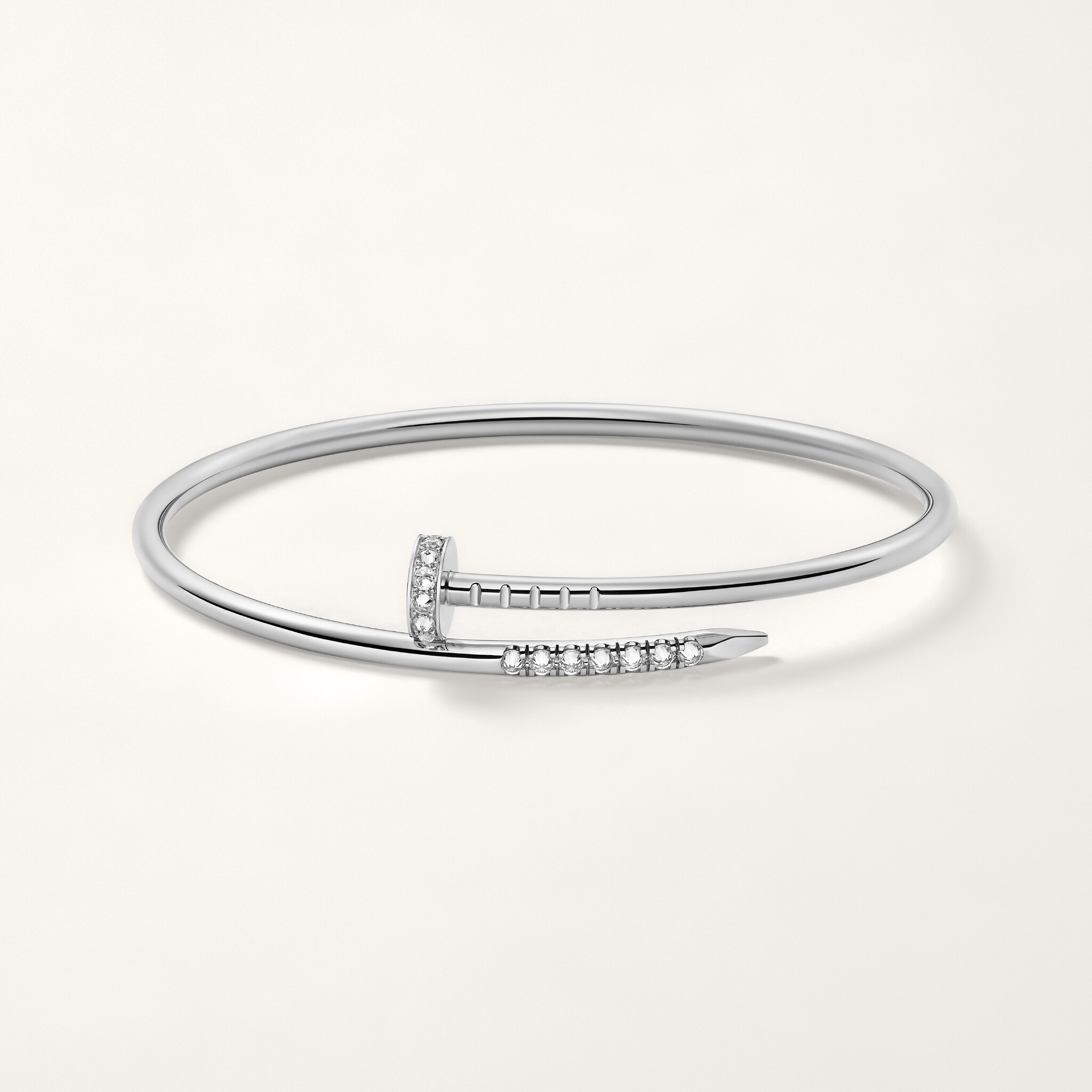With the Juste un Clou bracelet, Cartier enhances the design of a basic shape by transforming a simple nail into a piece of jewellery. Created by Aldo Cipullo for Cartier New York in the 1970s, this emblematic Cartier design unites precise form, perfect proportions, and refined details.