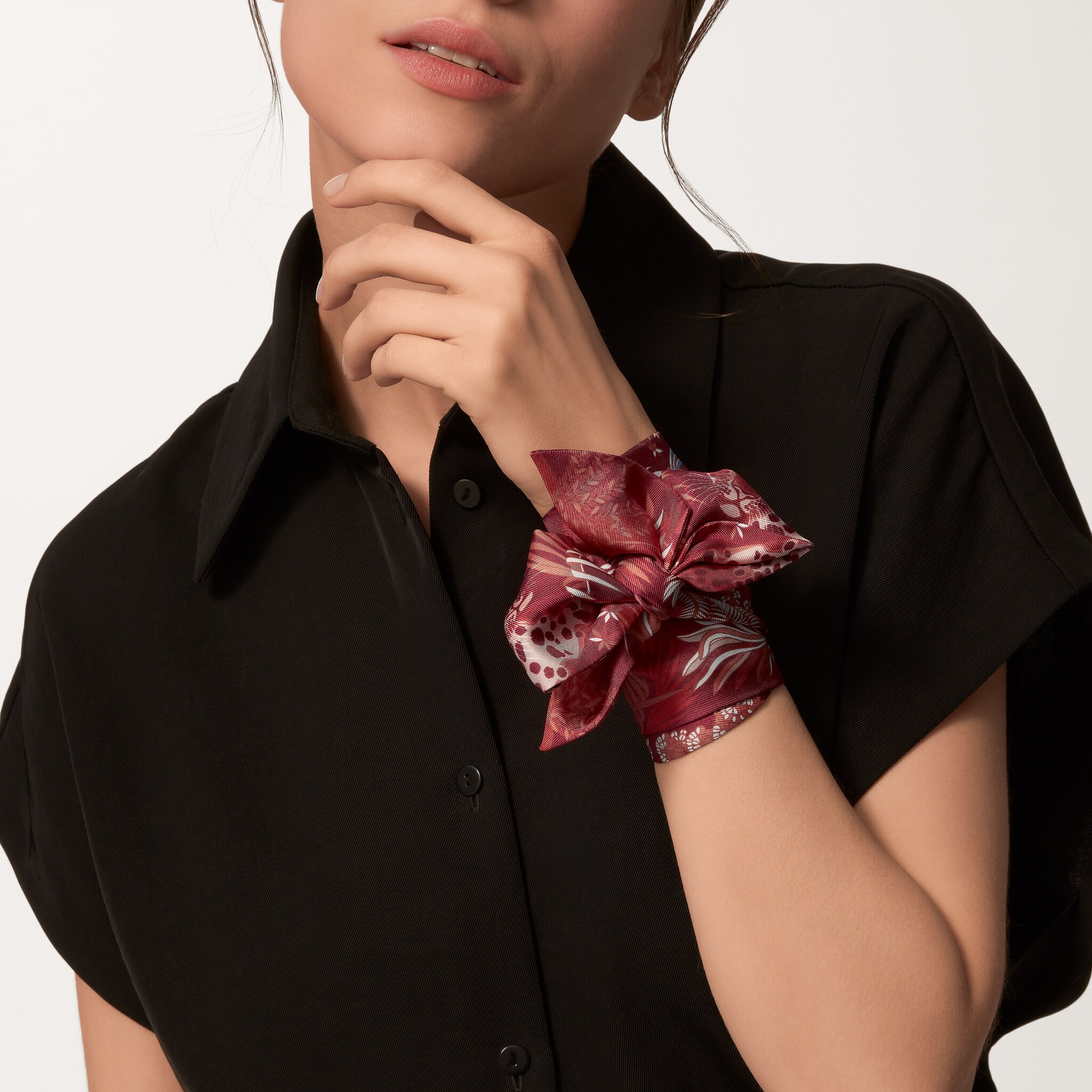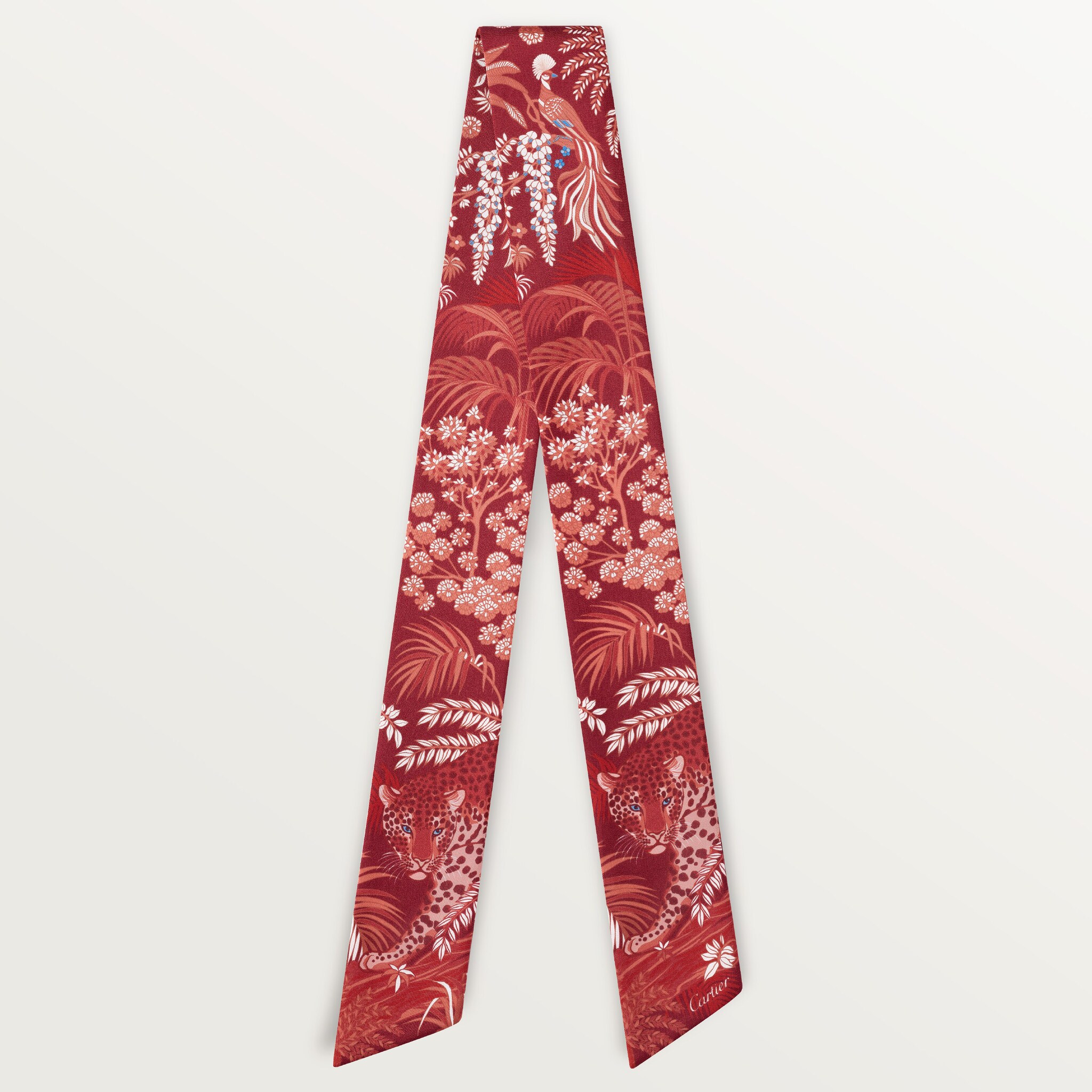 Panthère Faune and Flora 90 scarf in burgundy silk twill. Dimensions: 90 cm x 90 cm.
