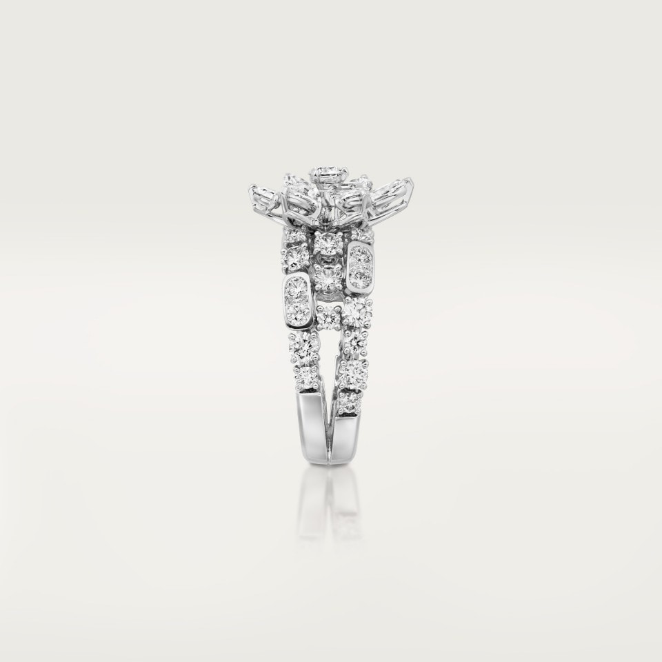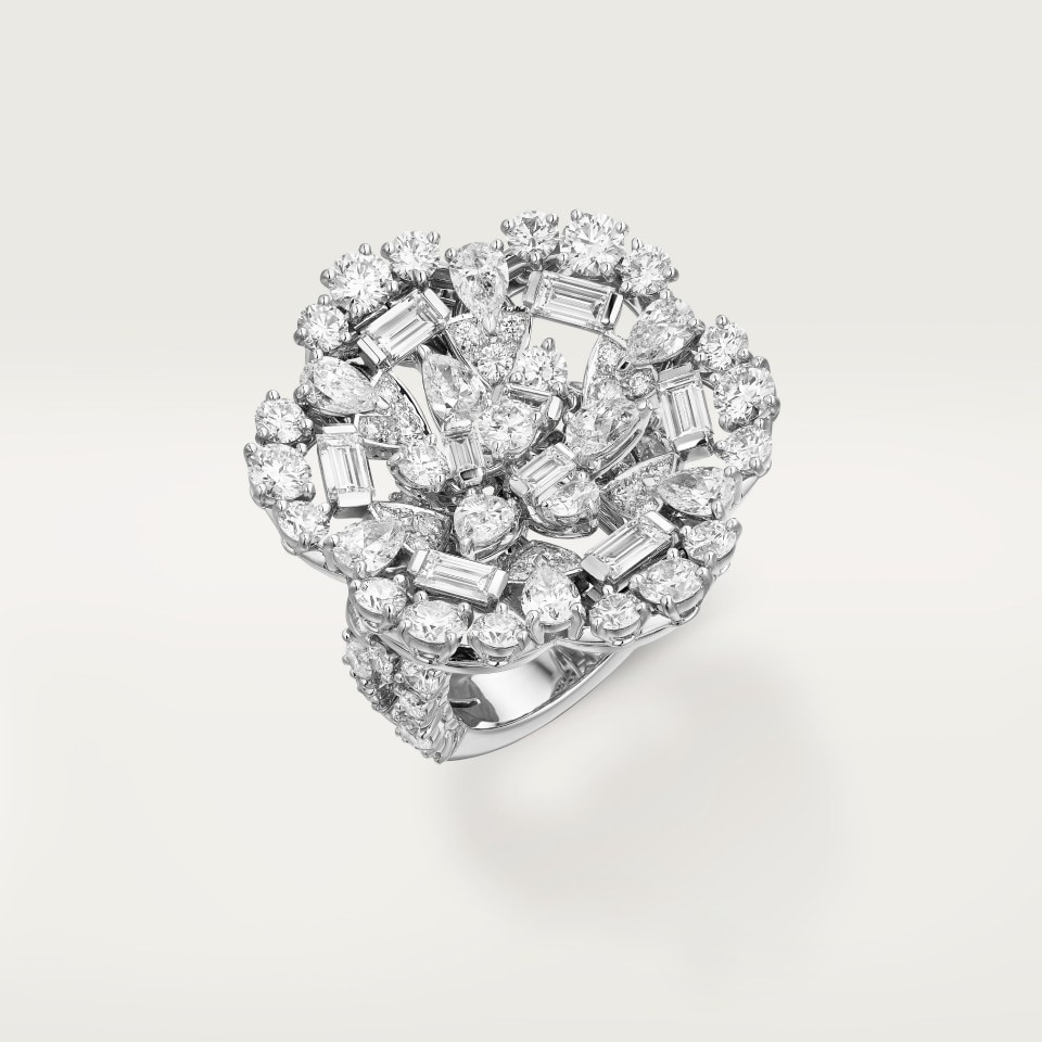 Ring - white gold 750/1000, set with nine pear-shaped diamonds totaling 1.41 carats, nine baguette-cut diamonds totaling 1.11 carats and 72 brilliant-cut diamonds totaling 3.87 carats.