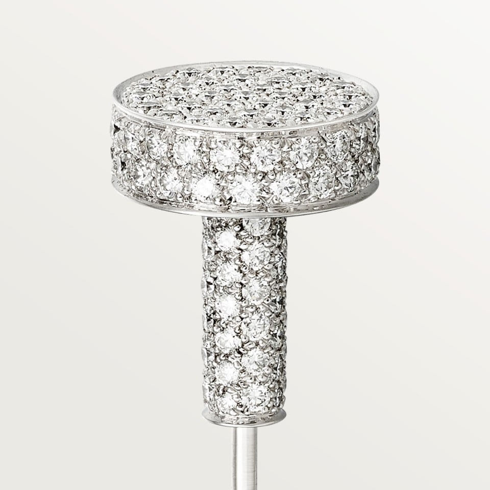 Juste un Clou tie pin, rhodiumized 18K white gold (750/1000), set with 297 brilliant-cut diamonds totaling 2.11 carats.