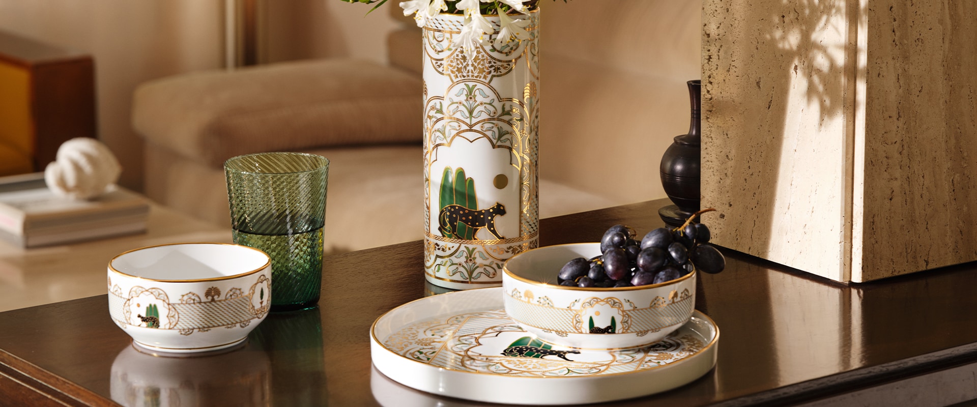 Tableware The art of the Cartier table setting has a family spirit and a sense of celebration, enhanced by the emblematic codes of the Maison and by the delicate materials chosen. Read More Read Less