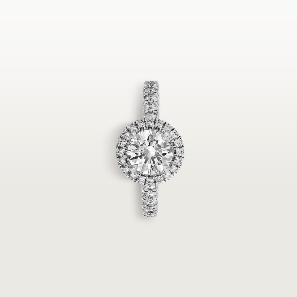 Solitario Cartier Destinée, platino 950/1000, engastado con un diamante talla brillante disponible de 0,50 a 4,99 quilates y pavé de diamantes talla brillante.