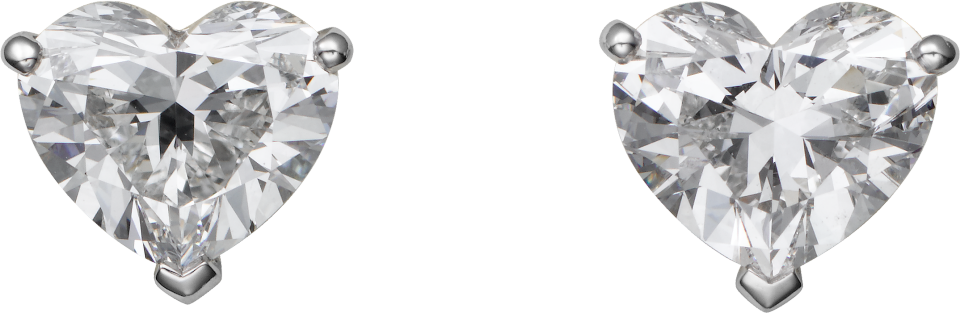 Boucles d'oreilles 1895, platine 950/1000, serties chacune d'un diamant taille cœur disponible à partir de 2.00 carats.