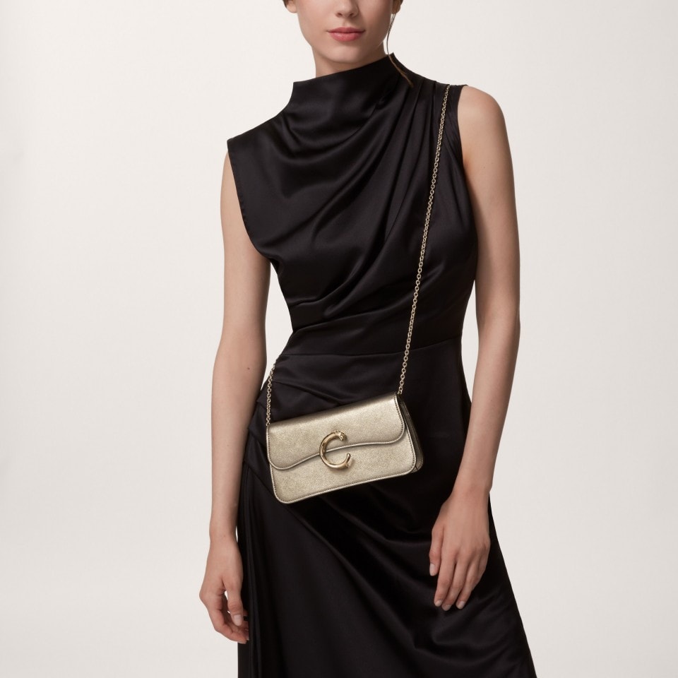 L'empreinte de la panthère est totale. Il y a ce que l’on voit d’elle, ce fermoir précieux et moucheté de noir qui focalise l’attention. Et il y a ce que l’on ne voit pas, l’idée d’un mouvement félin imperceptible, une très légère ondulation donnée au rabat.