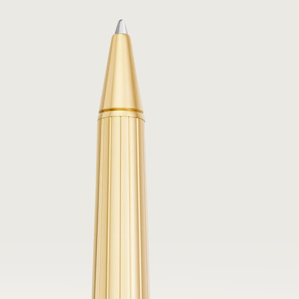 Stylo bille Santos de Cartier grand modèle, capuchon et corps en métal décor godrons finition dorée, attributs et vis finition dorée.