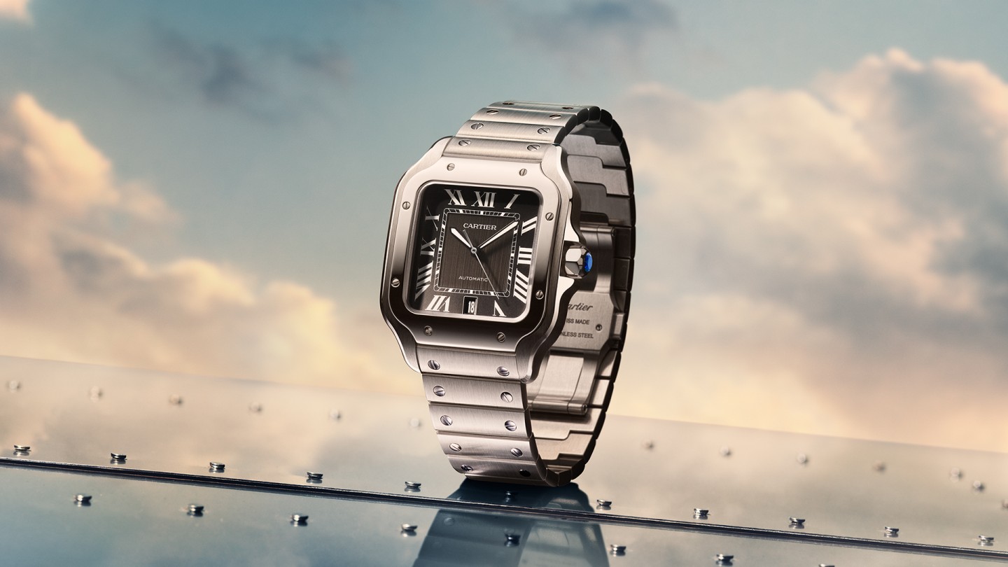 La montre Santos de Cartier, c’est un design emblématique dont Cartier universalise le porté.