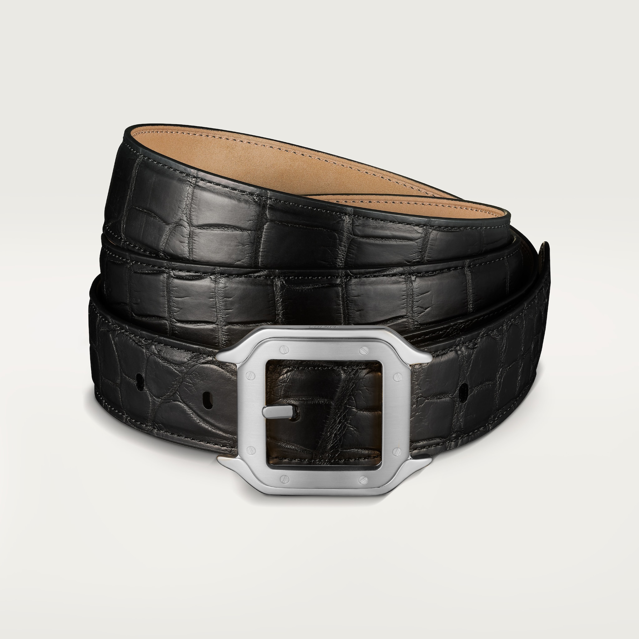 골드 피니싱 아르디옹 버클 벨트, 까르띠에 시그니처. 블랙 컬러 바다 크로커다일 가죽 스트랩, 엠보싱 "Cartier" 스탬핑. 크기: 폭 30mm x 길이 1.230mm. 길이 조절 가능.