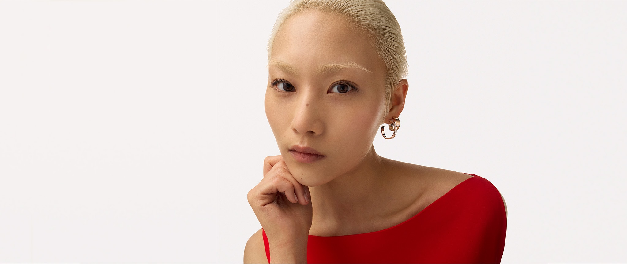 개성 넘치는 스크루가 돋보이는 LOVE 브레이슬릿이 컬렉션의 레퍼토리에 거드룬 모티프의 유연한 모델과 링을 더해 스타일을 확장합니다.