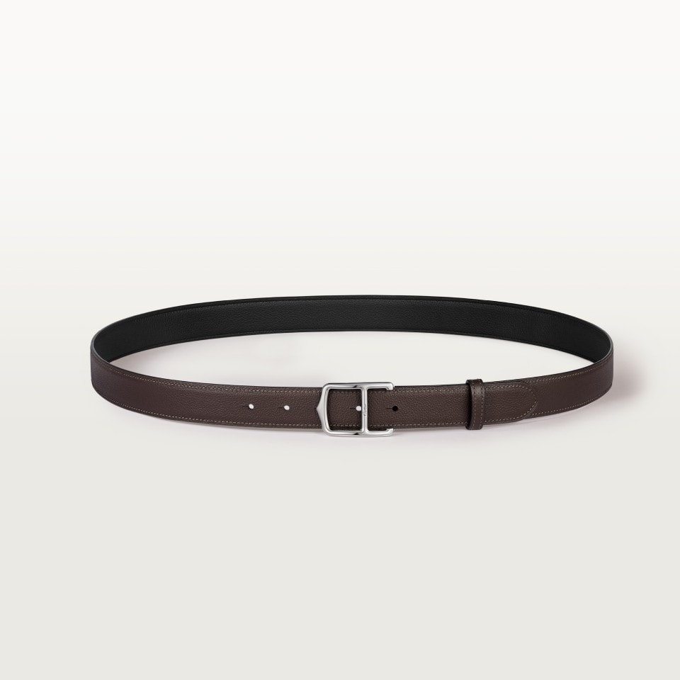 C-riem (3 cm) van zwart/ebbenhoutkleurig generfd kalfsleder, roestvrijstalen afwerking