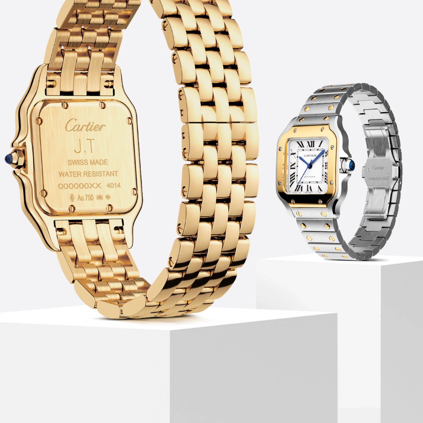 Cartier biedt de mogelijkheid aan om een horloge te laten graveren of er een band bij te kiezen.