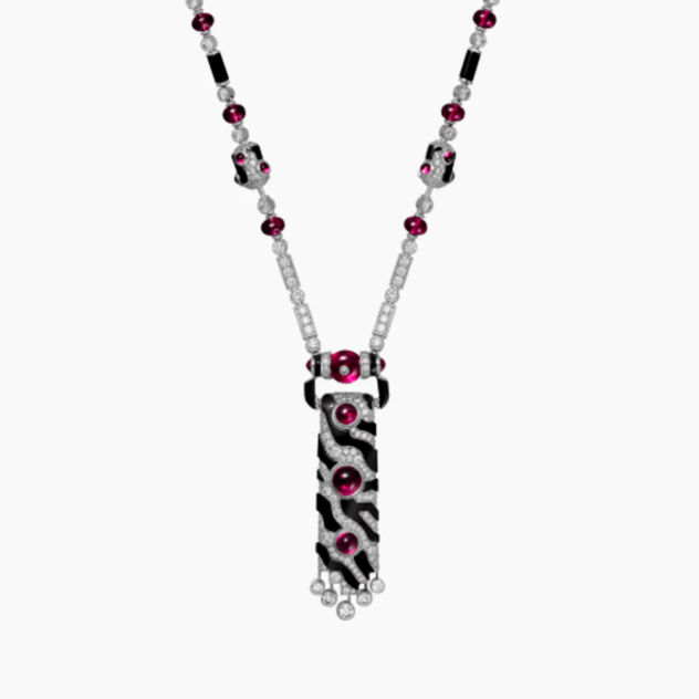 Насекомые являются источником восхищения Дома благодаря анатомии, которая концентрирует множество деталей в миниатюрном пространстве. Среди них Cartier выделяет цикаду и воплощает ее изысканность в форме колье из бриллиантов, горного хрусталя, рубинов и оникса.