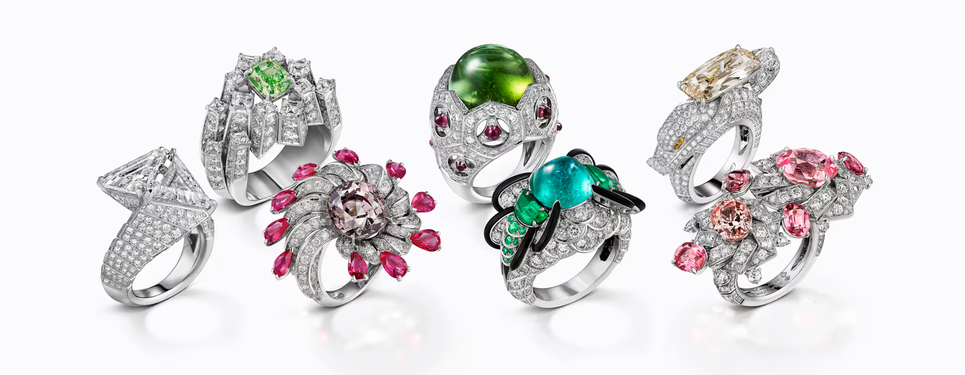 Все они вдохновлены красотой мира. Семь колец, которые отправляют взгляд в путешествие из морских глубин в дальние уголки неба. Каждый из них концентрирует необыкновенное творчество вселенной в своем масштабе и словно в миниатюре. Панцирь с рисунка в старом учебнике по биологии; химера, мифологическое существо Гомера; ископаемое аммонита; морское чудовище; созвездие; геологическая кристаллизация; китайская головоломка... Эти сокровища составляют необычайную коллекцию ювелирных раритетов.