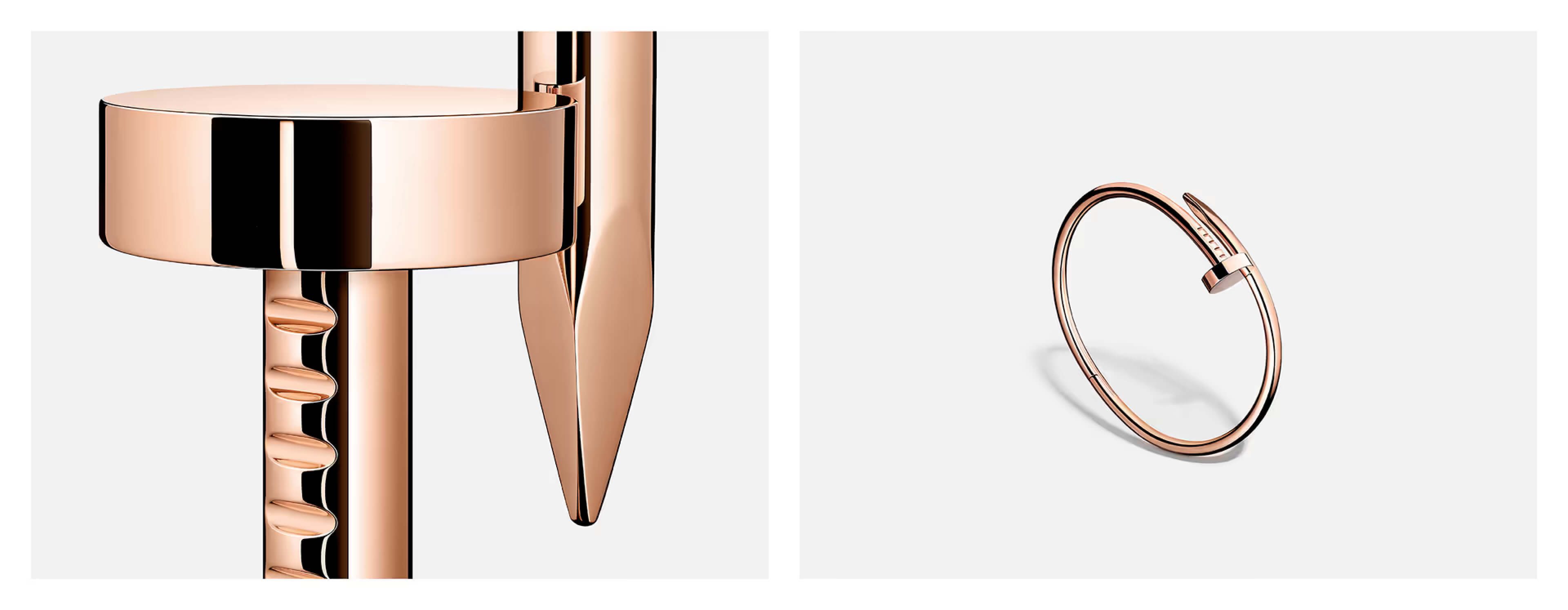 Знаменитый браслет в форме гвоздя был создан в 1971 году нью-йоркским отделением Cartier и изначально носил имя Nail. В 2000-х годах он триумфально возвращается в моду под названием Juste un Clou (фр. «просто гвоздь»), которое он получает за безупречную чистоту линий. Сегодня в коллекции представлены браслеты из желтого, белого и розового золота с простой или украшенной бриллиантовым паважем шляпкой, а также кольца, броши, колье и серьги, выполненные в форме драгоценного гвоздя.