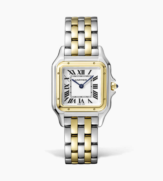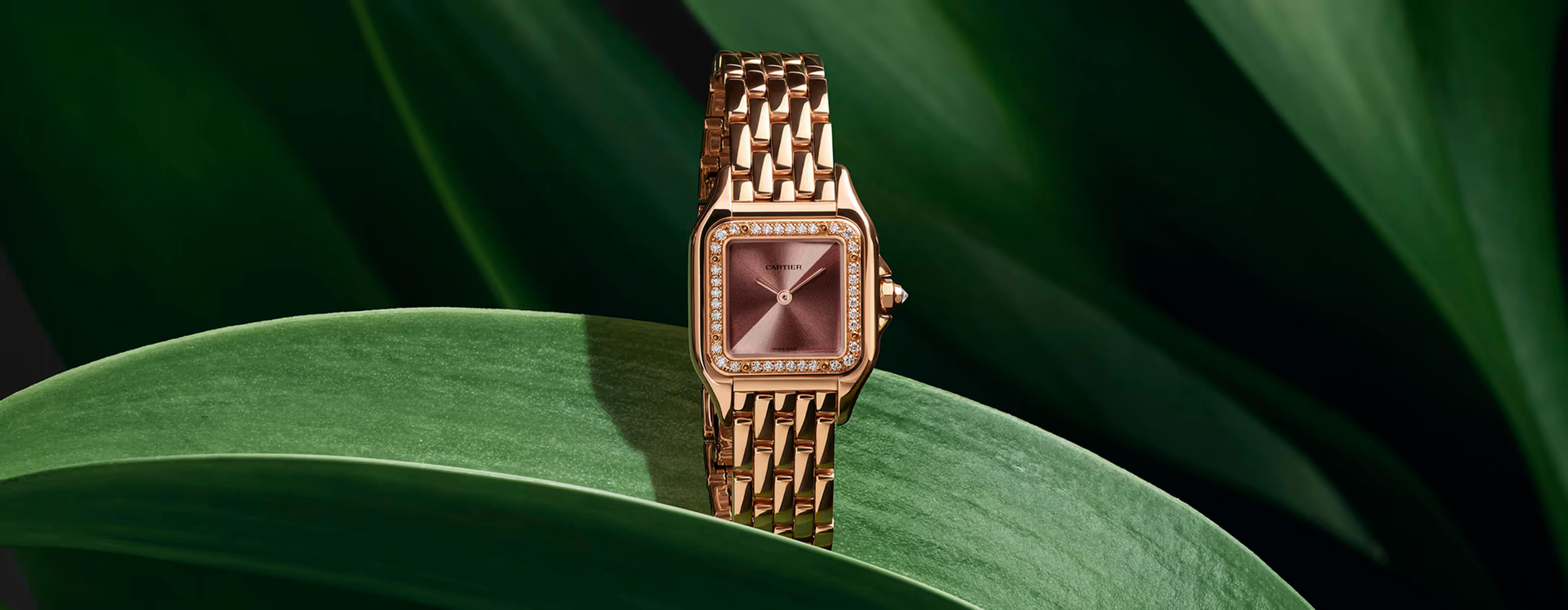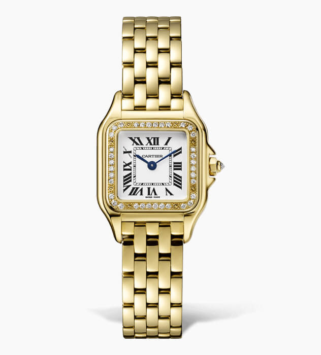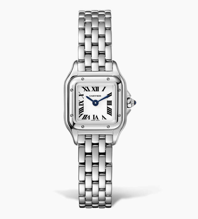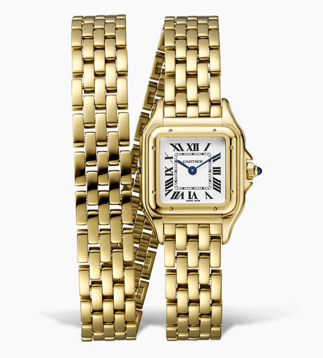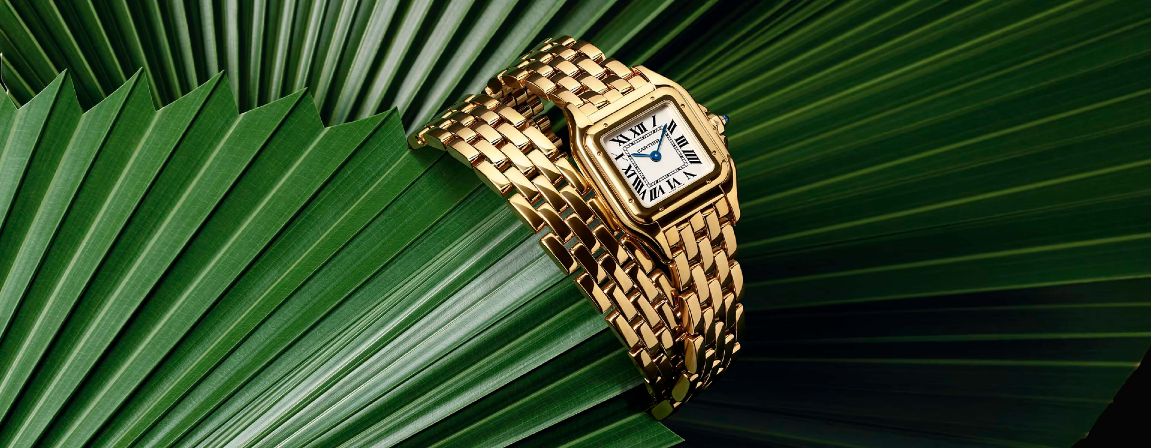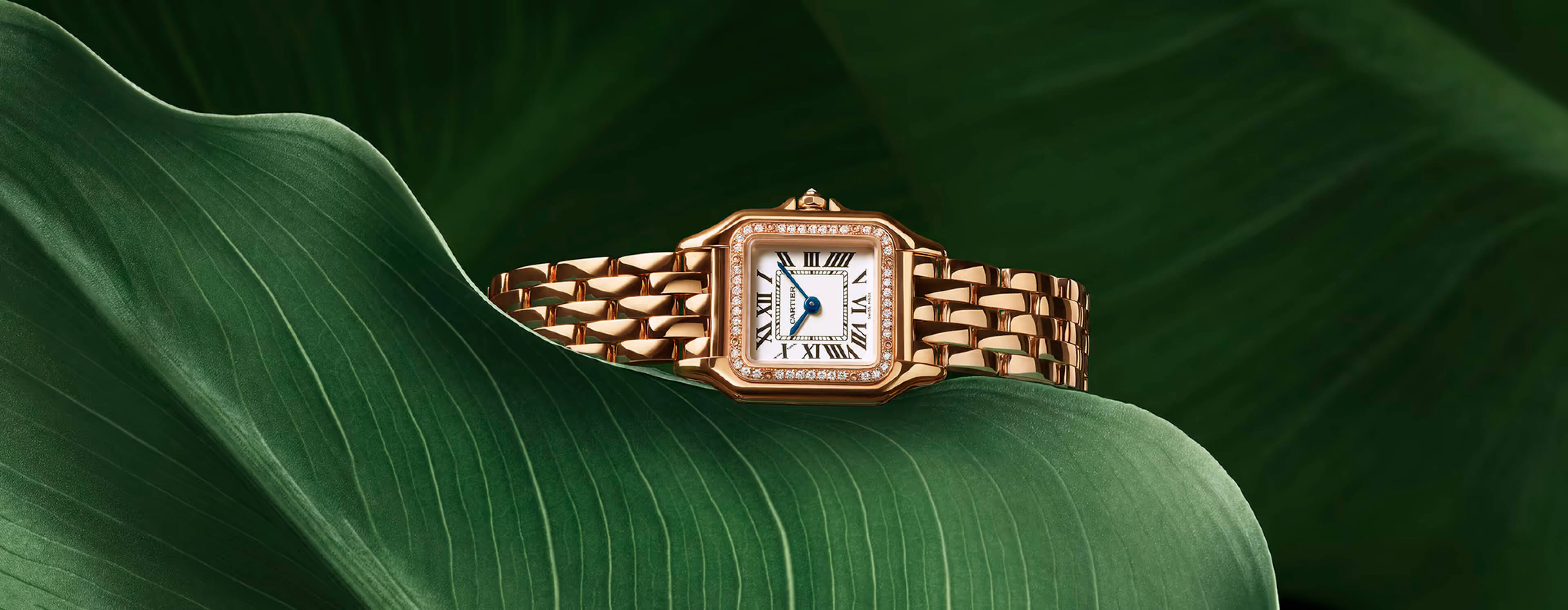 При создании часов Panthère de Cartier дизайнеры стремились добиться чистоты линий и плавности очертаний, которые превратили эти часы в драгоценное украшение. Своим названием модель обязана металлическому браслету, поразительная гибкость которого напоминает о грациозных движениях пантеры, непреходящего символа Дома Cartier на протяжении многих лет.