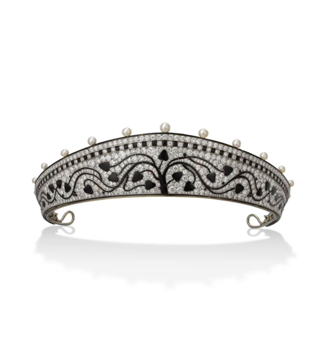 Платина, бриллианты, натуральный жемчуг, оникс, эмаль