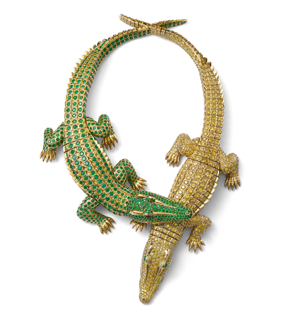 Туловища крокодилов собраны на шарнирных соединениях. Колье можно трансформировать в две броши.