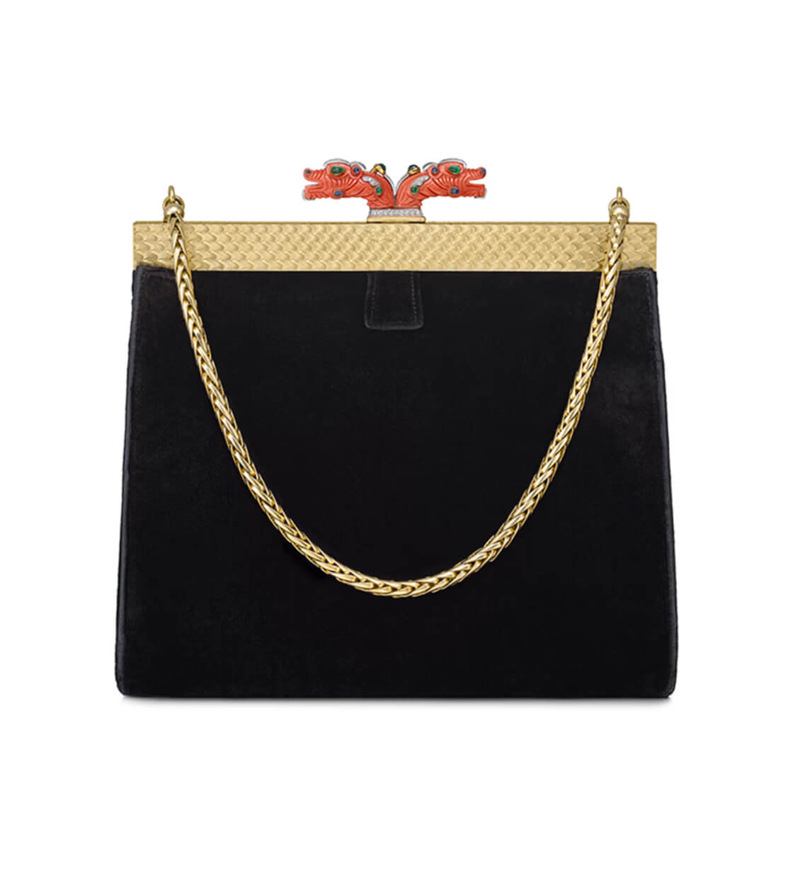 Аксессуар был представлен на Всемирной выставке 1925 года в Париже. Он инкрустирован пластиной из слоновой кости, сохранившейся в запасниках Cartier, где собрано множество фрагментов украшений и старинных предметов персидского, индийского, китайского и египетского искусства.