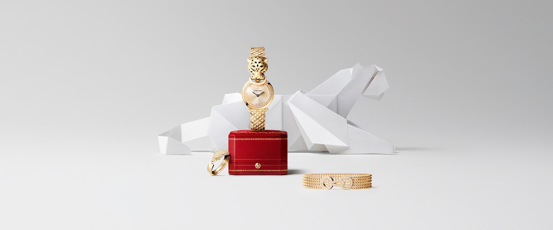 Panthère de Cartier'den Trinity'ye ve Juste un Clou'dan Clash de Cartier'ye: Maison'un sembolik kreasyonları pırlanta kaplama ile görkemli hale getirilmiştir.