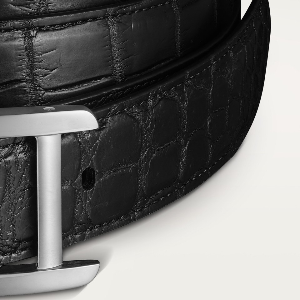 鍍鈀飾面針扣式皮帶,Cartier 標誌。黑色及棕色牛皮雙面皮帶,Cartier 壓印標誌。尺寸:寬30毫米 x 長1230毫米。可調節尺寸。