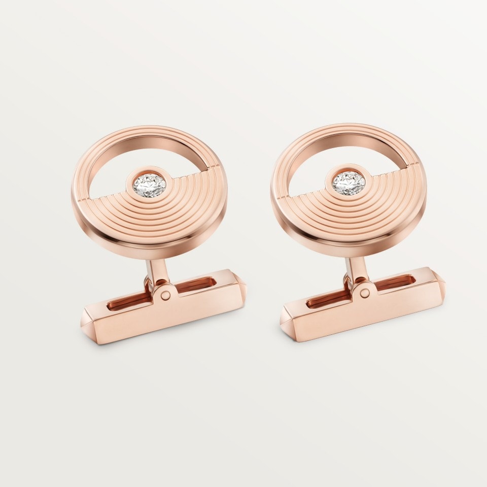 Masse Mystérieuse 圖案袖扣,750/1000玫瑰金,鑲嵌2顆明亮式切割圓鑽,共重0.36克拉。袖扣頭尺寸:長17毫米 x 寬17毫米 x 厚3.5毫米。