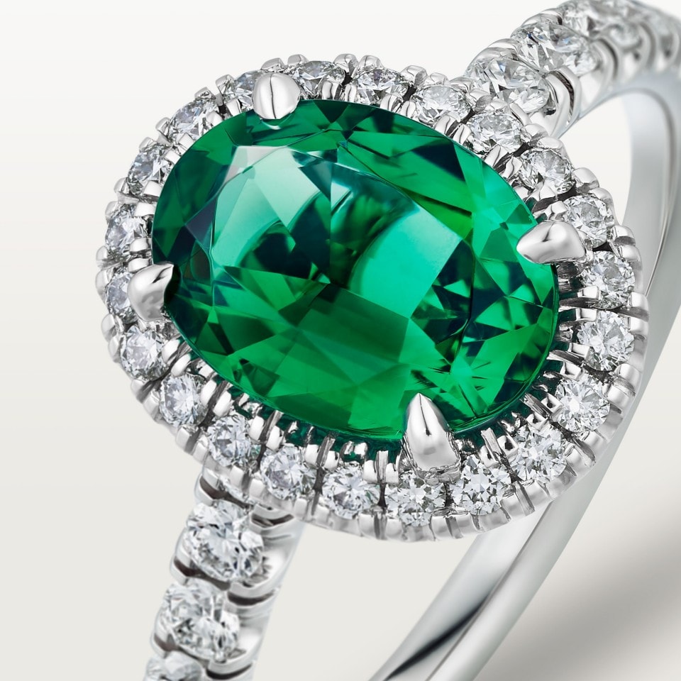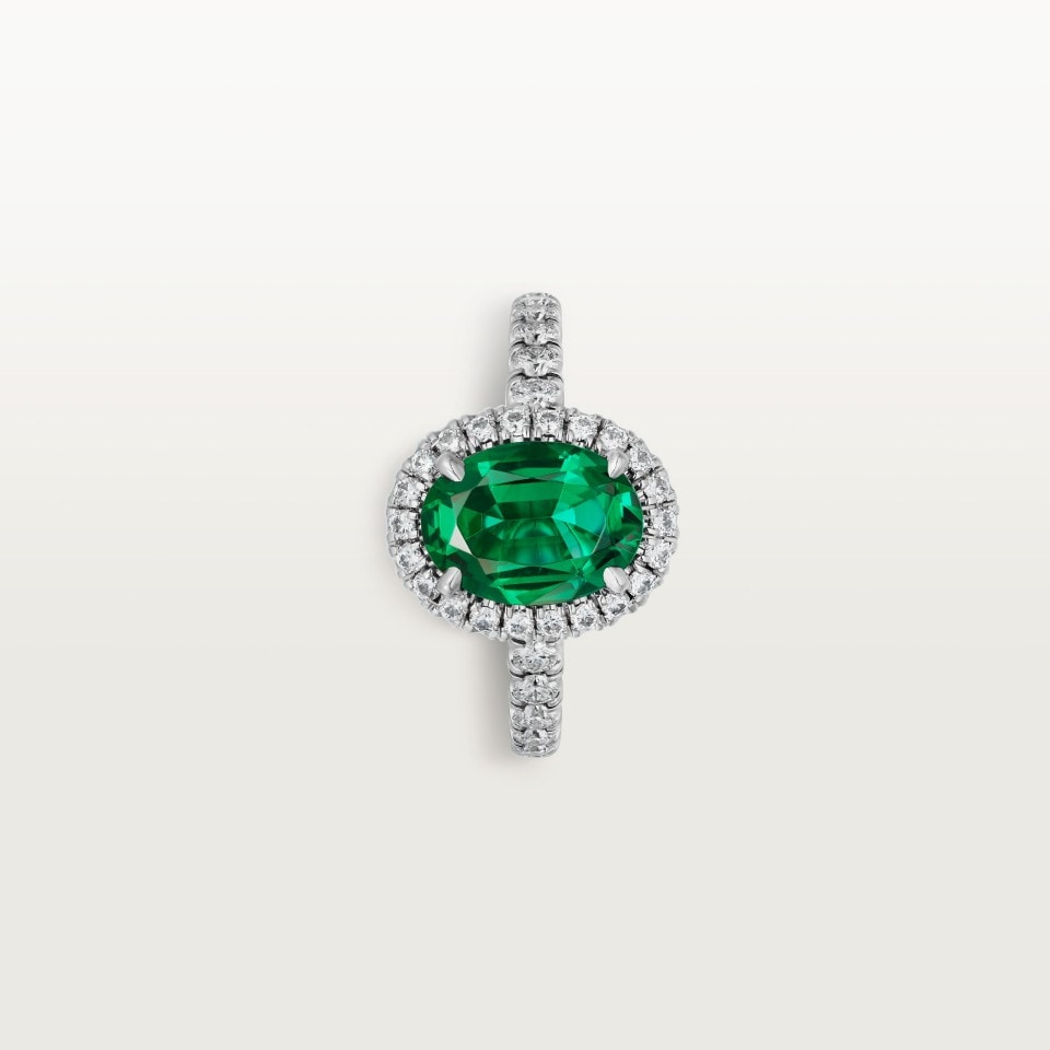 Cartier Destinée Solitaire 戒指,950/1000鉑金,鑲嵌1顆橢圓形切割祖母綠,可選擇重1.00至1.99克拉的祖母綠,鋪鑲明亮式切割圓鑽。