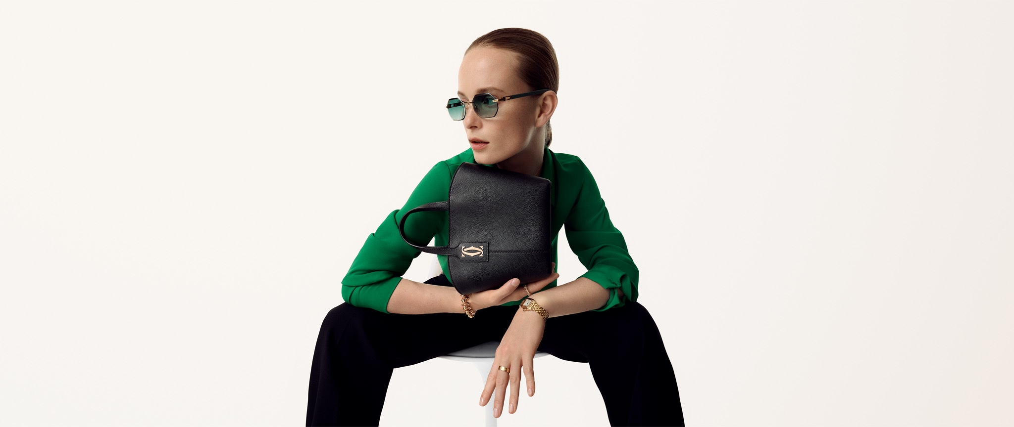 包款點綴卡地亞字首造型珠寶搭扣,優雅別緻。