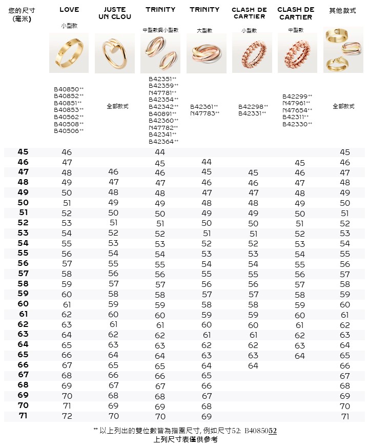 為了獲得最準確的結果,請與您最近的卡地亞專賣店預約會面,我們將幫助您找出正確尺寸。