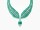 一顆重逾35.47克拉的哥倫比亞六邊形祖母綠,內含難得一見的天然晶體,卡地亞為其設計了一款結構靈動流暢的臻美作品。一顆一顆晶瑩剔透、精挑細選的祖母綠圓珠在作品上逐漸展開,營造出流麗的垂褶感,而絲毫不損線條美。祖母綠串由經過悉心切割並鑲嵌鑽石的小方形綠松石分隔。背面環環相扣的設計猶如靈活蕾絲。主圖案可作胸針佩戴。
