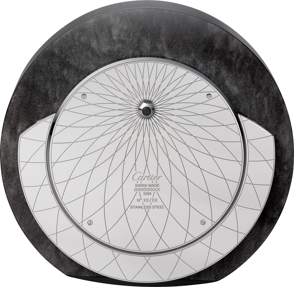 限量版。高级座钟,镀银黑曜石与精钢,剑形蓝钢指针,石英机芯。尺寸:108 x 40 x 108 毫米。