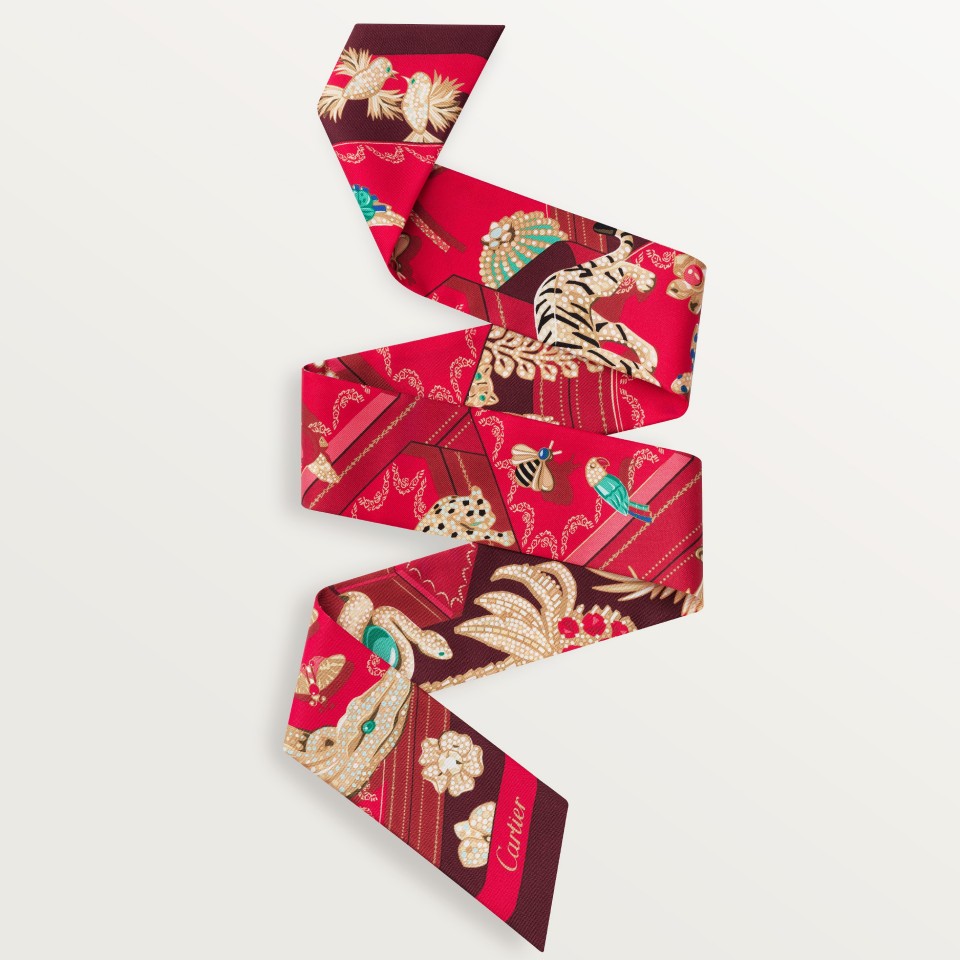 Ecrins Cartier Bandeau细丝巾,红色斜纹真丝。尺寸:105厘米 x 6厘米。
