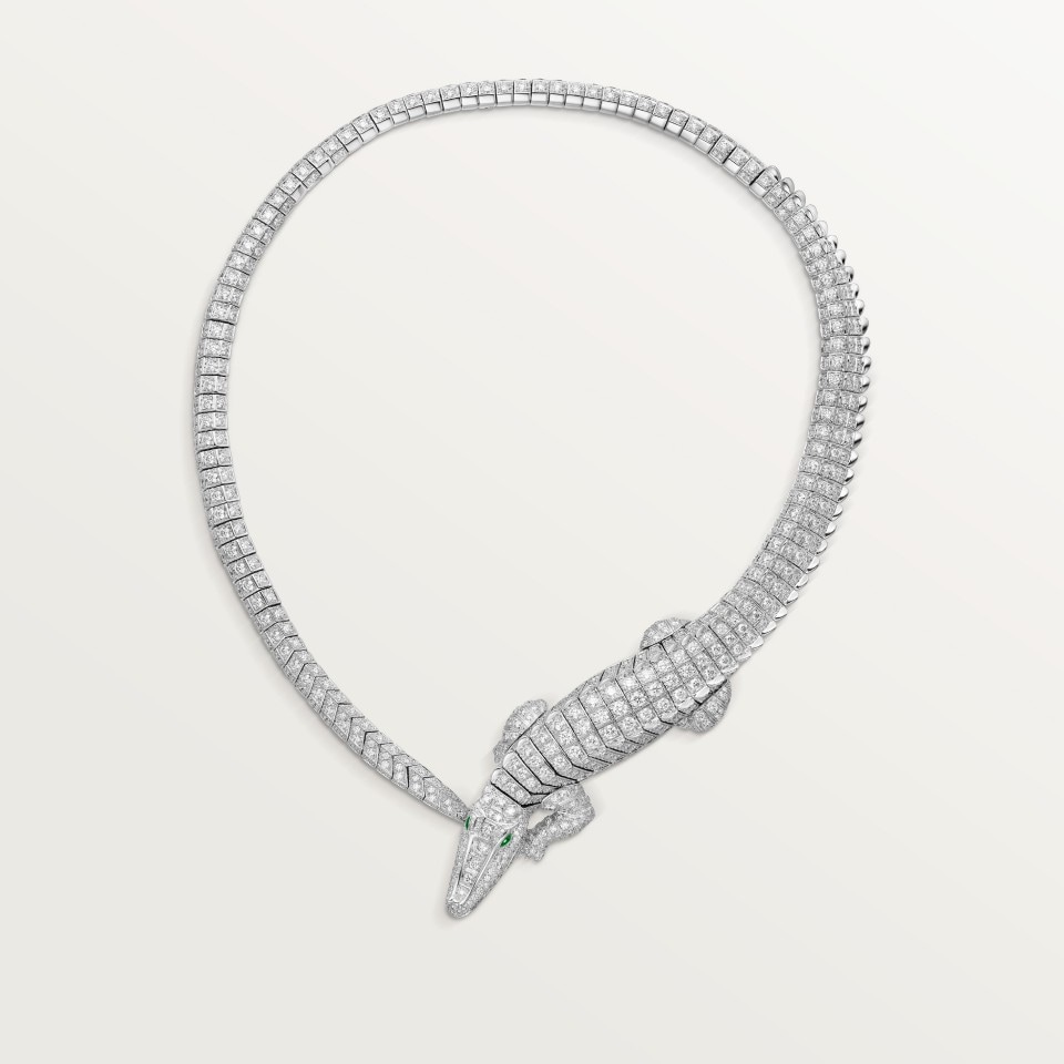 卡地亚动物与植物系列项链,18K白金,镶嵌祖母绿和945颗共重21.05克拉的圆形明亮式切割钻石