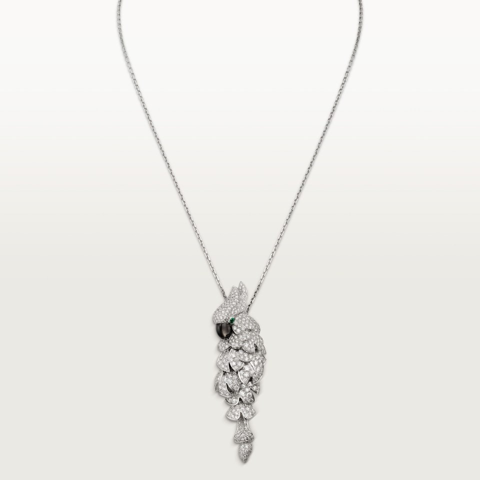 Les Oiseaux Libérés项链,750‰白金,镶嵌456颗圆形明亮式切割钻石,总重5.99克拉。祖母绿,珍珠母贝。