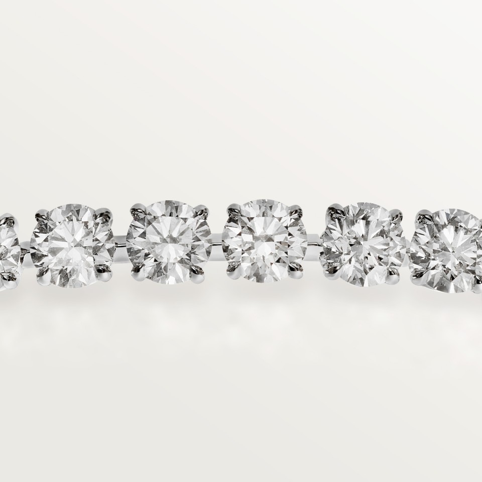 经典钻石链系列手链,950/1000铂金,镶嵌43颗圆形明亮式切割钻石,总重8.16克拉。