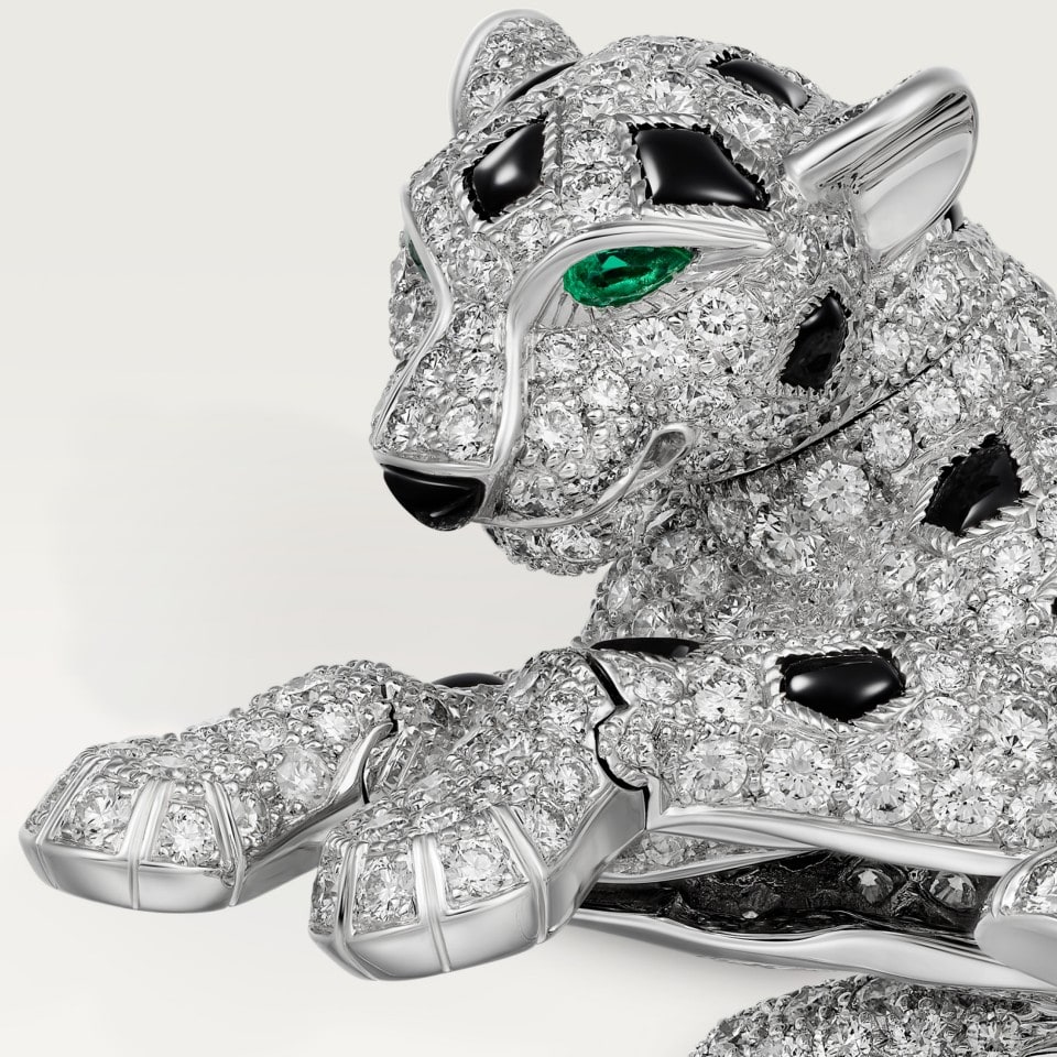 Panthère de Cartier卡地亚猎豹戒指,750/1000白金,镶嵌591颗圆形明亮式切割钻石,总重5.12克拉,祖母绿,缟玛瑙。