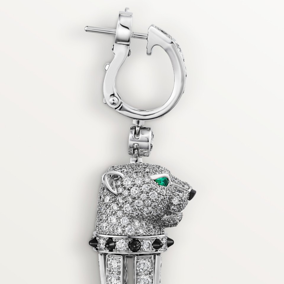 Panthère de Cartier卡地亚猎豹耳环,750/1000白金,镶嵌544颗圆形明亮式切割钻石,总重6.7克拉,祖母绿,缟玛瑙。