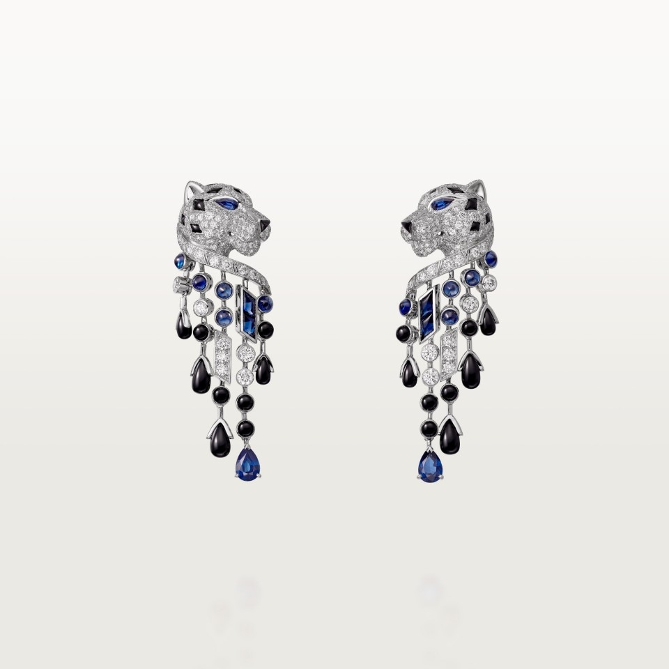 Panthère de Cartier卡地亚猎豹耳环,蓝宝石,大号款,铺镶钻石