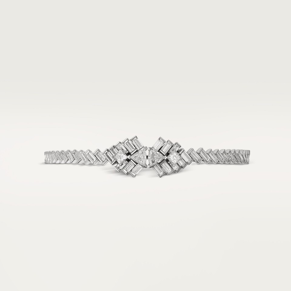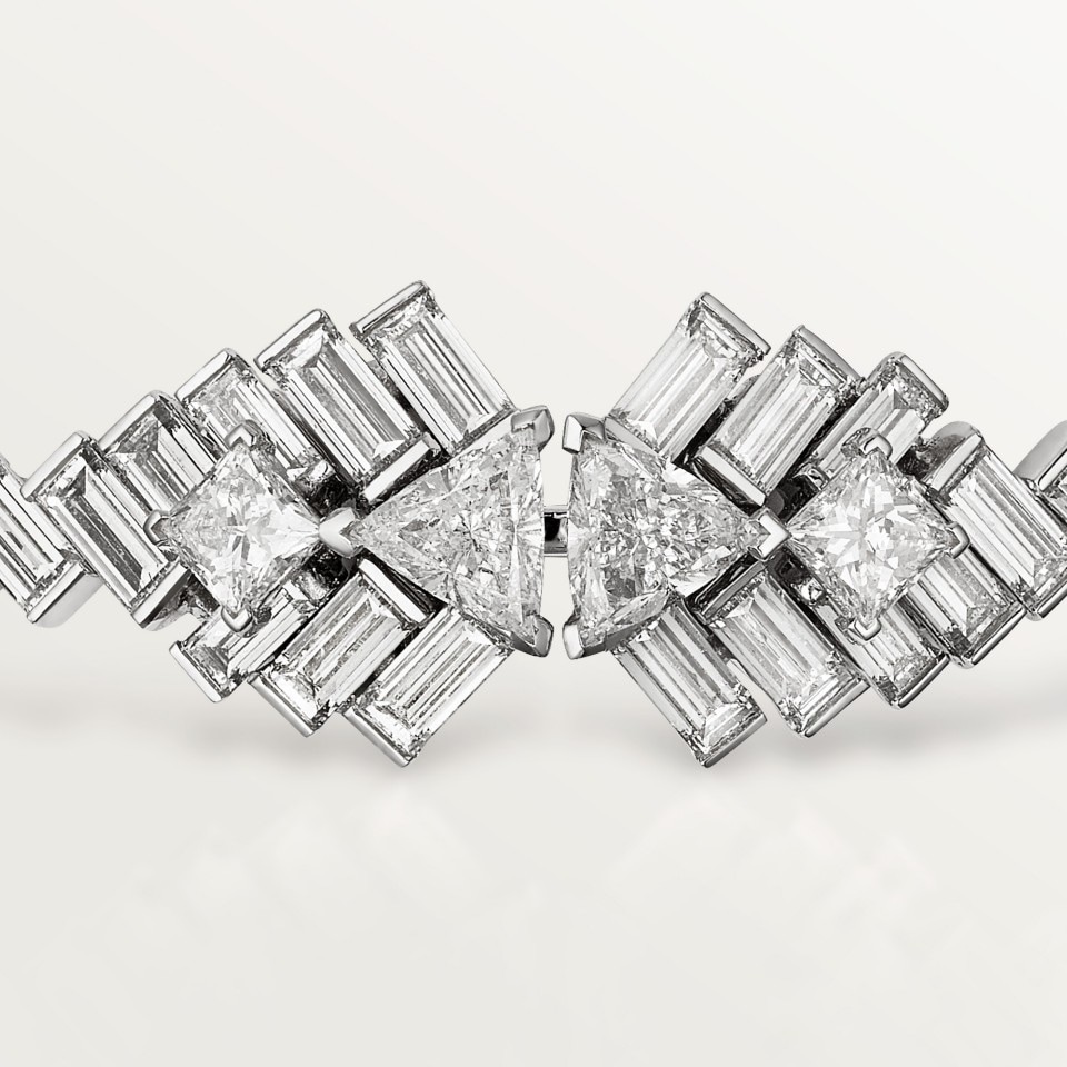 Reflection de Cartier 手镯,750‰白金,镶嵌2颗三角锥形切割钻石,2颗公主方形切割钻石,79颗长方形切割钻石,总重5.28克拉(适用尺寸:17)。