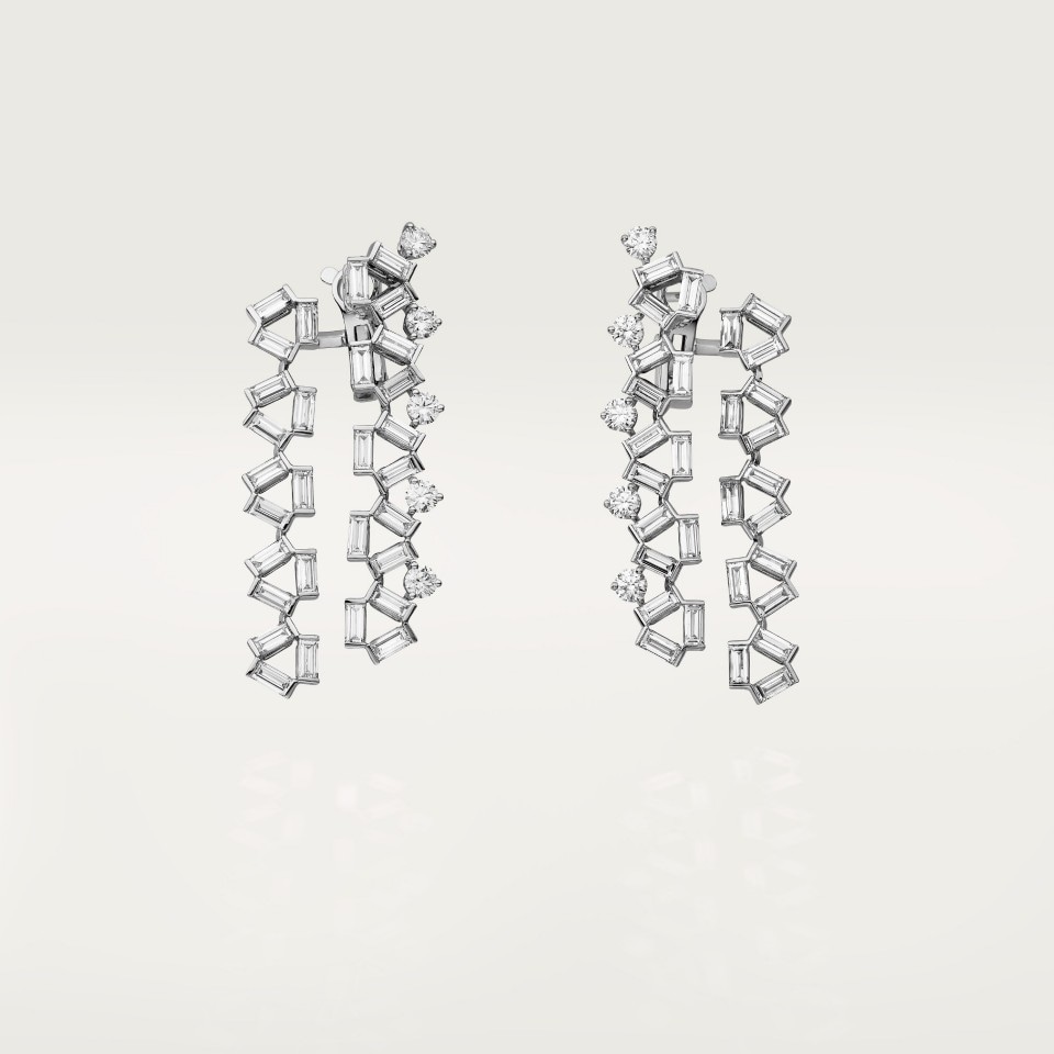Reflection de Cartier耳环,750/1000白金,每只耳环皆镶嵌5颗圆形明亮式切割钻石,总重0.93克拉,30颗长方形切割钻石,总重4.32克拉。