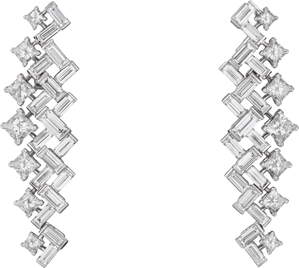 Reflection de Cartier耳环,750/1000白金,每只镶嵌18颗长方形切割钻石,两只总重2.55克拉,每只镶嵌7颗公主方形切割钻石,两只总重1.72克拉。