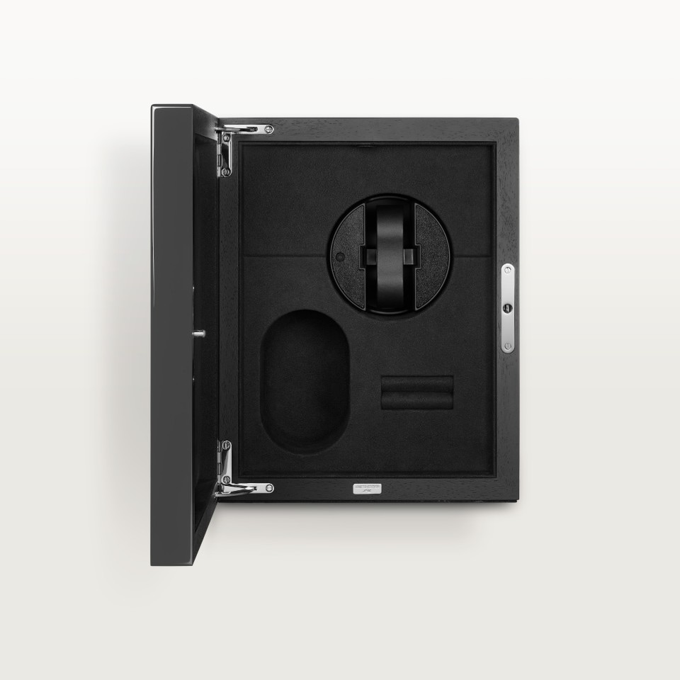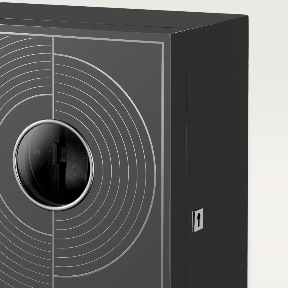 Masse Mystérieuse图案腕表盒、腕表旅行收纳盒与袖扣,灰色清漆木,银色图案,玻璃透镜,上链摆陀,黑色衬里。