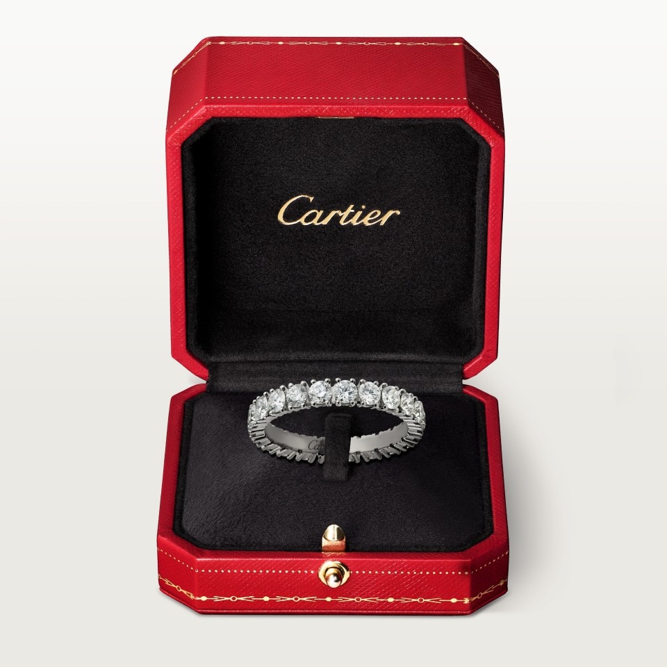 Cartier Destinée 结婚戒指,宽3.3毫米,950/1000铂金,镶嵌22颗圆形明亮式切割钻石,总重1.34克拉(适用尺寸:52)。