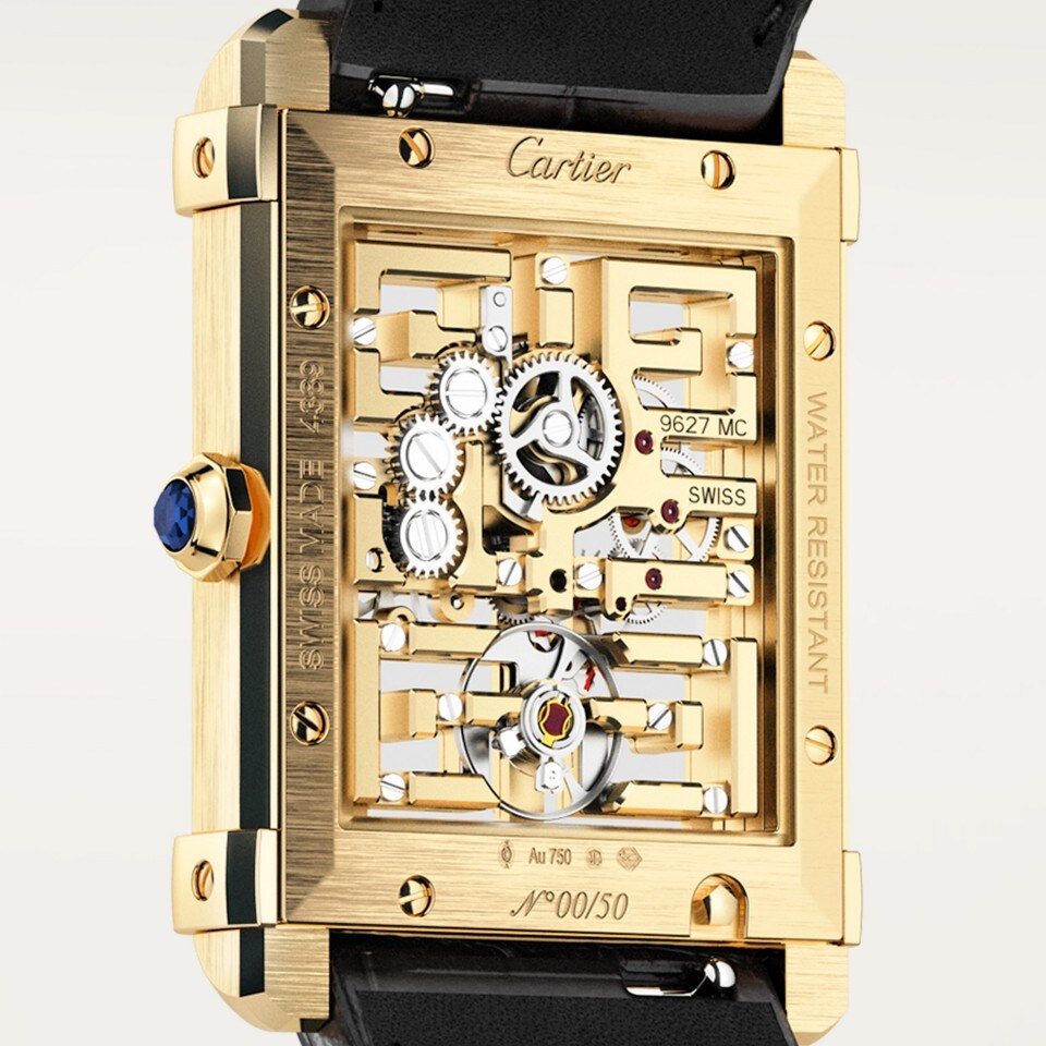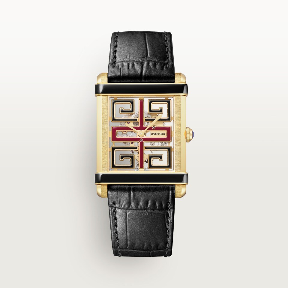 Tank Chinoise腕表,镂空表款,卡地亚9627 MC型工作坊精制手动上链机械机芯。